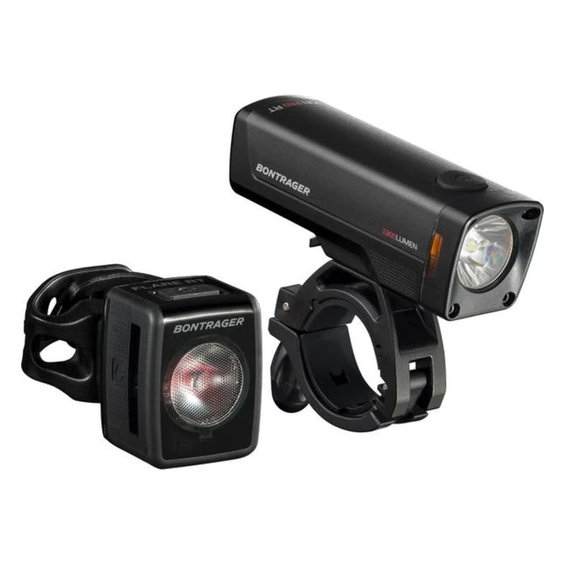 Stay visible on the road with the Bontrager Ion Pro RT / Flare RT Light Set. The Ion Pro RT provides enough power to light up any trail, and the Flare RT is the ultimate daytime running rear light. Both are USB rechargeable and feature distinctive daytime flash settings that are visible from up to 2km during the day. Plus, it easily attaches to your handlebars, helmet, or bike mount.