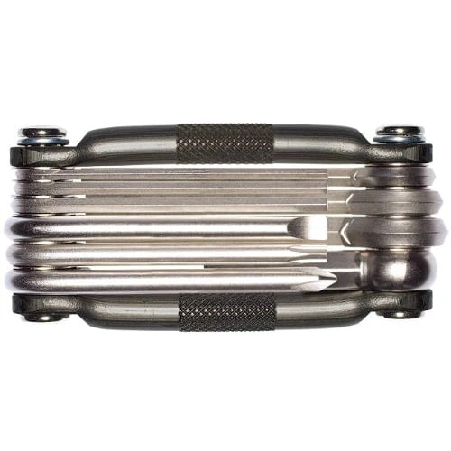 Crank Brothers Multi-10 Tool The Crank Brothers Multi 10 Tool has a design that’s simple and functional. It features 10 basic tools for essential tightening and adjustments, with a few welcome extras that the minimalists generally miss, like Phillips head and flathead screwdriver bits, and a T-25 Torx driver for the hard-to-fit mystery bolts on your disc brakes. Of course the Multi 10 also has the ubiquitous Allen wrench set, and Crank Brothers’ comforting lifetime warranty should you somehow manage to break it. Specs: Weight – 124 grams; Length – 3.5 inches; Frame – 6061-T6 aluminum; Tools – 6051 high tensile steel.