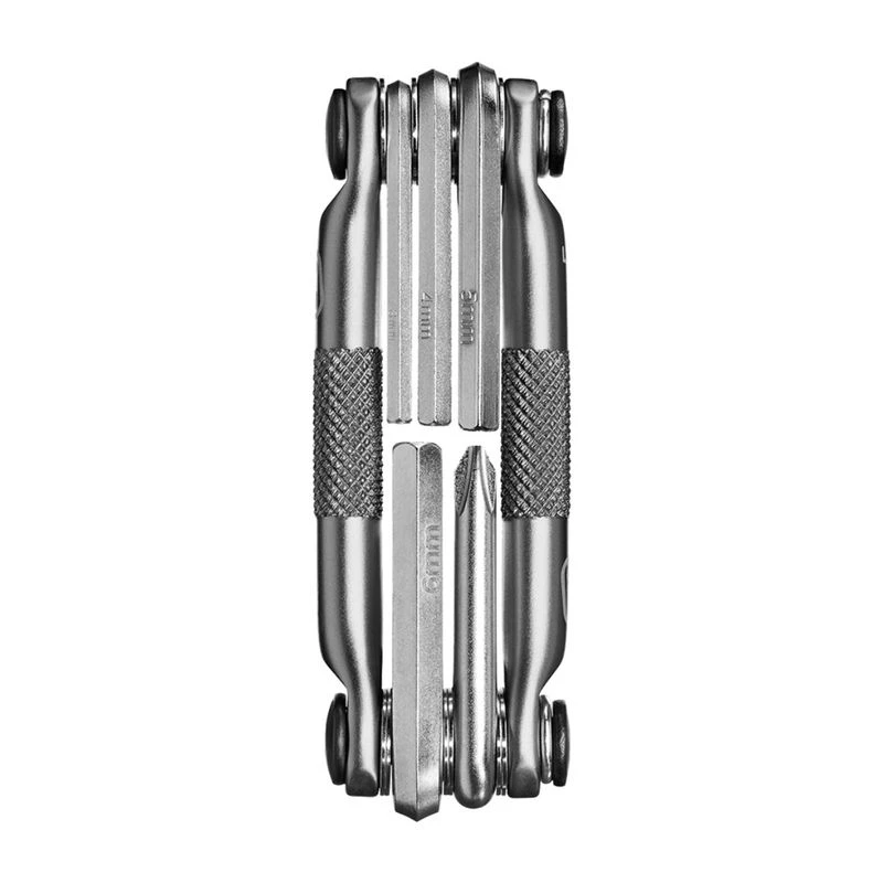 Crank Brothers Multi-5 Tool has an aluminum frame with the five most common tools needed for road and trail repairs: a Phillips screwdriver and 3, 4, 5 and 6mm Allen wrenches. It’s made of high-tensile steel, and tips the scales at a spartan 85 grams. Specs: Weight – 85 grams; Length – 3.5 inches; Frame – 6061-T6 aluminum; Tools – 6051 high tensile steel.