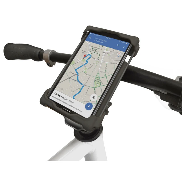 You can now easily bike with your phone close by thanks to the Delta Cycle XL Smartphone Bike Caddy. The XL Smartphone Caddy easily attaches to your bike’s handlebars or bike stem, and fits large smartphones in cases including iPhone 6 Plus and Android devices. A ratcheting system allows you to adjust the angle of your phone so you can see the screen clearly as you bike. A touchscreen accessible weather protection bag is included. FEATURES: XL smartphone bike holder Attaches to your bike’s handlebars or bike stem Fits most large smartphones in cases including iPhone 6 Plus, Android Devices, and other large smartphones Fits smartphones up to size 7.8″ h x 3.5″ w x 0.5″ d (does not fit Otterbox cases) Easy to install and remove with its elastic bungee straps Includes a stem cap and handlebar mounting bracket Mounting bracket fits handlebars up to 1.275″ in diameter Features a ratcheting system that allows you to adjust the angle of your phone Securing cam lock adds extra security while biking Comes with a touchscreen accessible weather protection bag