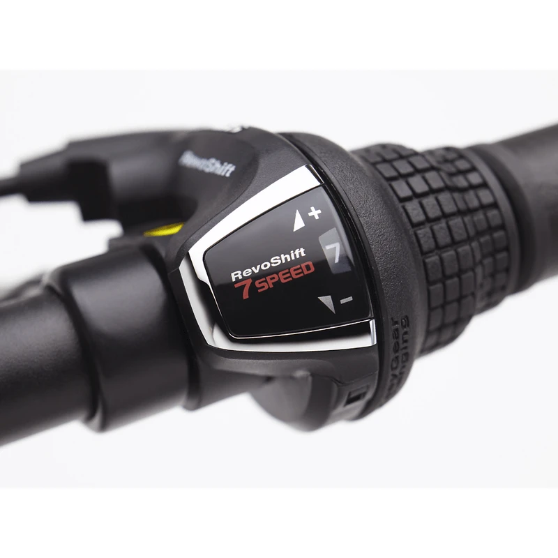 - Shifters: Shimano Revo 7-speed twist w/ optical gear display