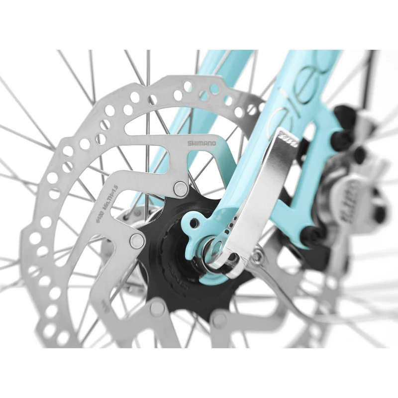 - Front hub: Alloy low-flange w/6-bolt disc, 36h, w/QR