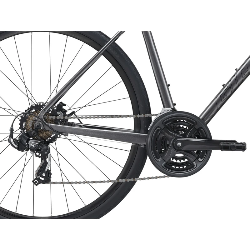 Puncture-resistant tires feature the tubeless ready Giant CrossCut Metro tires (on select models). Integrated rack mounts make it easier to carry your daily essentials or load up for weekend adventures.