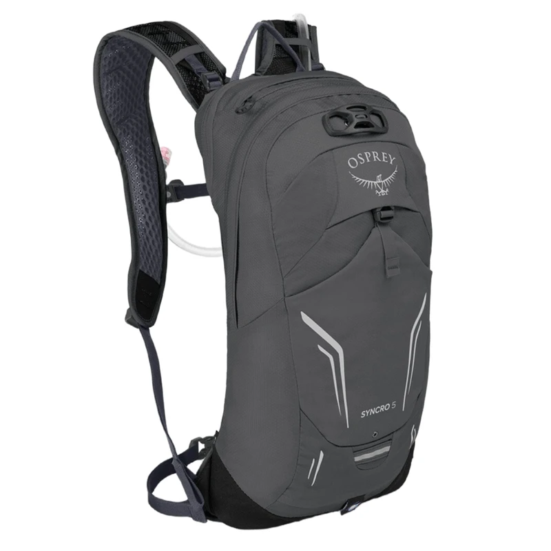 When you want to carry hydration on your backâand not much elseâthe Syncro 5 is your answer. Itâs everything youâve come to expect in an Osprey pack, plus an AirSpeed 3D-tensioned backpanel that provides ultimate ventilation. Take the Syncro along on your next ride in the Arizona desert or humid Pacific Northwest and youâll understand. Comfort and stability are key with shoulder straps curved in the same position as your natural riding position and padded hipwings featuring an ErgoPull waiststrap. A 2.5-liter reservoir and high-visibility raincover are also included.