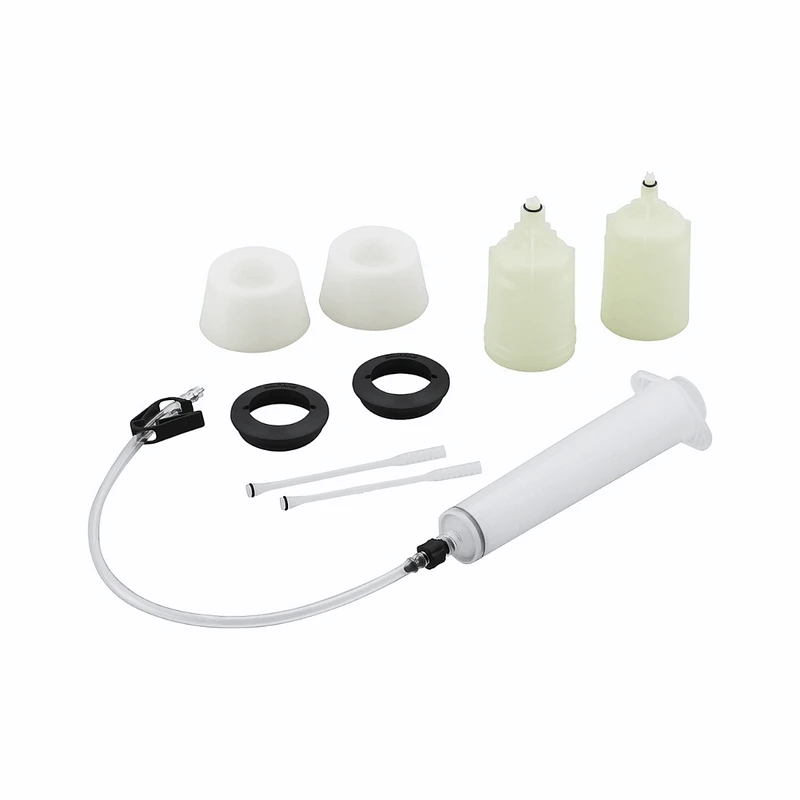 High quality one-way bleeding ventilation set for use with mineral oil. The bleeding kit is specially designed for Shimano MTB and Road disc brakes. It is equally suitable for brake calipers with bleeding nipples and bleeding sockets.