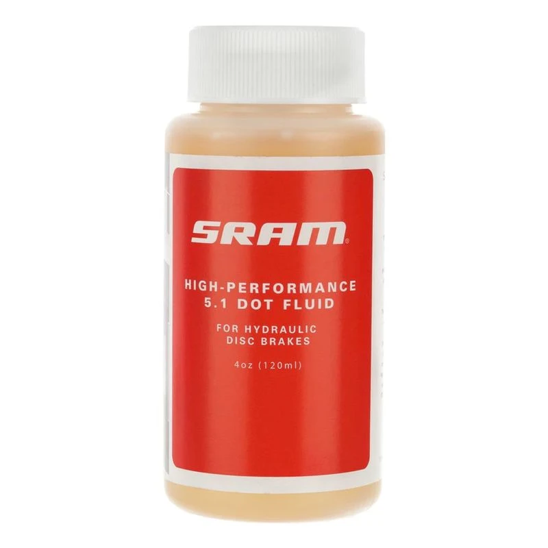 SRAM DOT 5.1 hydraulic brake fluid 4oz. Has a higher boiling point than DOT-4, but must be changed more frequently due to faster water absorption (considered a racing fluid).