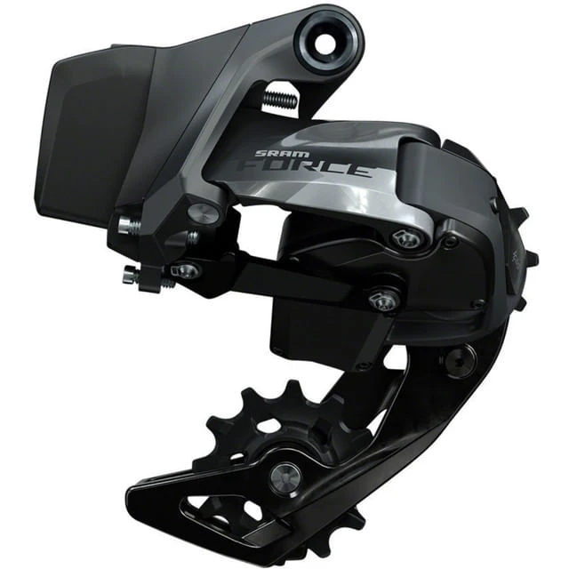 Whether 2x or 1x, tarmac or gravel, the Force eTap AXS rear derailleur is up for the task. With Orbit damper technology for quiet, secure chain management over rough roads and capitalizes on larger X-SYNC pulleys for improved durability and efficiency.