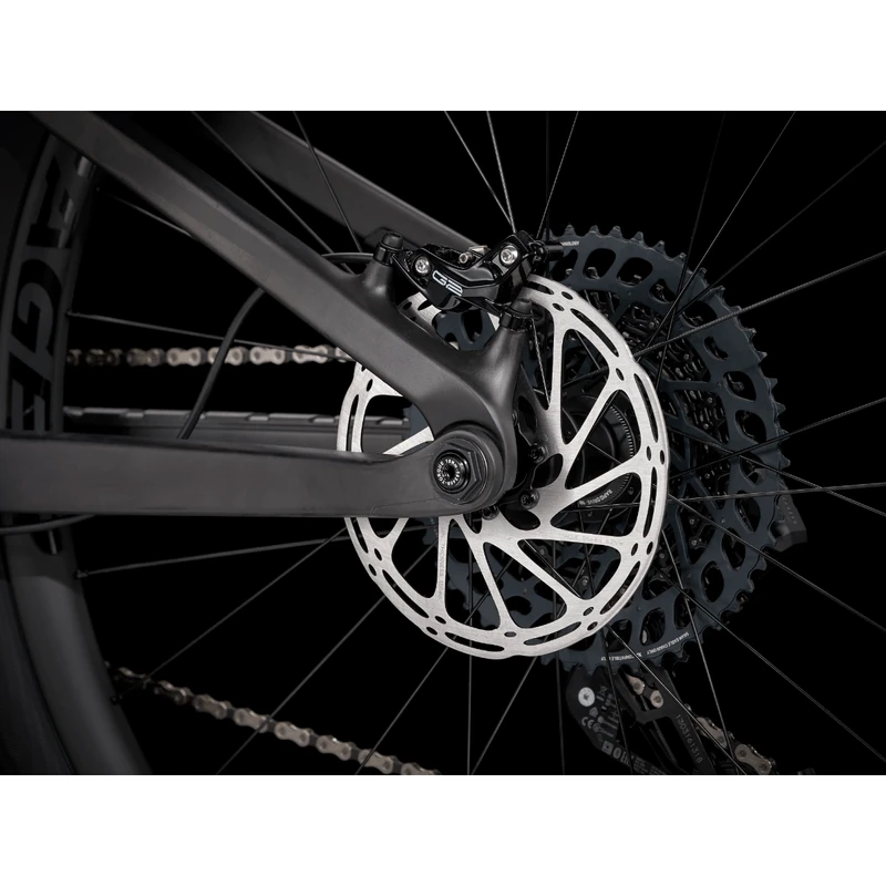 A light and stiff full-carbon frame with internal storage, FOX Performance 36 fork with a GRIP damper that offers more adjustment, and a RE:aktiv with Thru Shaft shock. SRAM’s latest GX Eagle AXS wireless electronic drivetrain with a leg-saving 52-tooth climbing gear, plus all-new Bontrager carbon wheels with a 108-tooth Rapid Drive hub for instant engagement, and powerful 4-piston brakes.