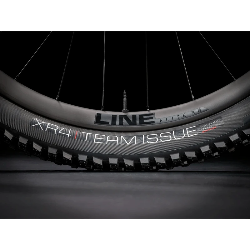 - Wheel front: Bontrager Line Elite 30, OCLV Mountain Carbon, Tubeless Ready, 6-bolt, Boost110, 15mm thru axle