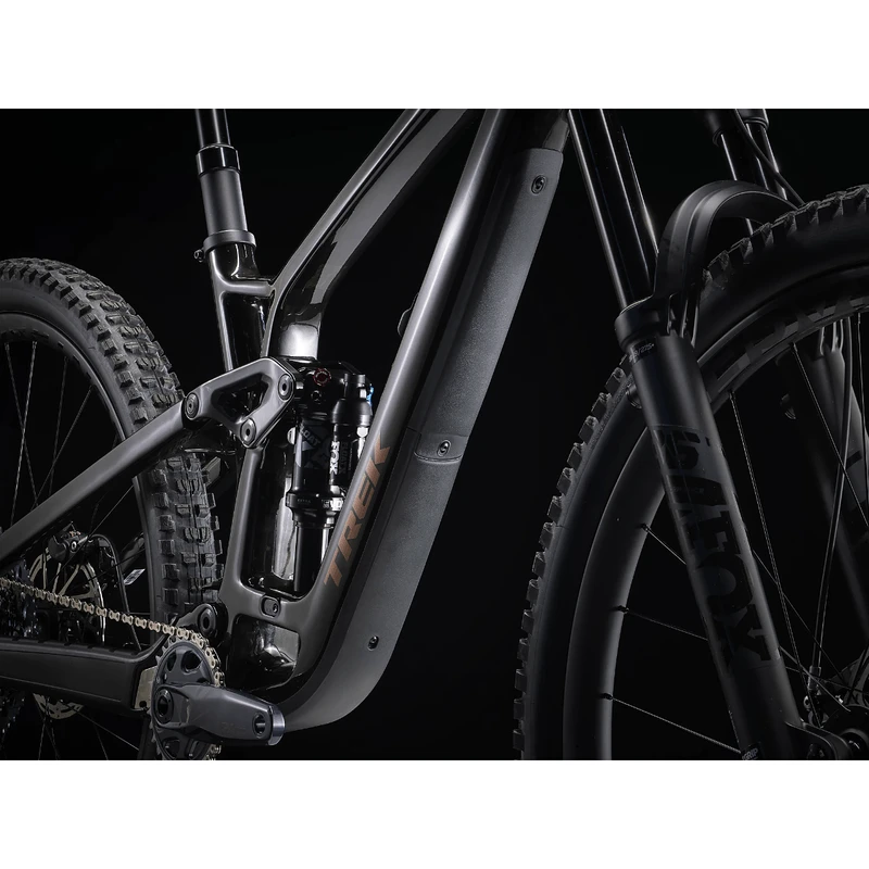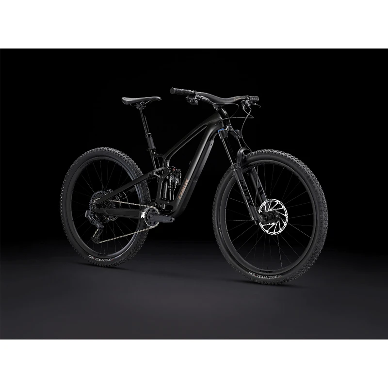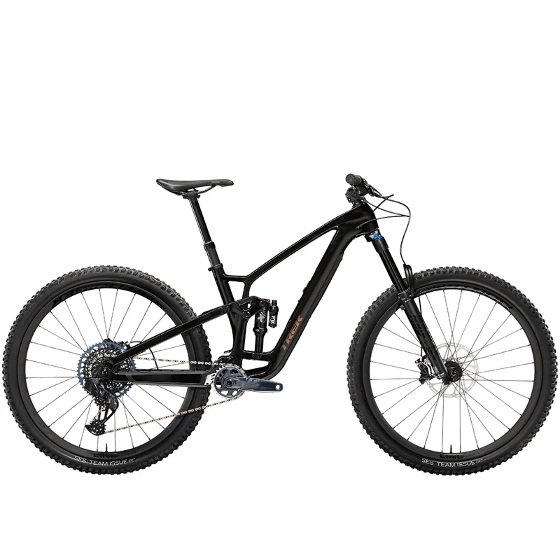 Fuel EX 9.8 is a hard-charging trail bike with a light and stiff carbon frame that’s smooth, quiet, and holds its own when you pick a line. It’s loaded with the latest tech like a wireless SRAM GX AXS drivetrain that’s super clean looking and customizable. 150mm front and 140mm rear suspension keep you in control on the roughest trails and it’s all topped off with carbon Bontrager wheels with a quick-engaging hub.