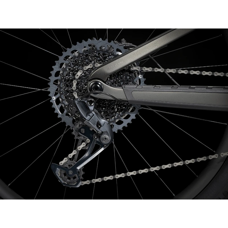 Fuel EX 9.8 combines a light full-carbon frame with parts chosen for the highest performance-to-price ratio. High-end FOX suspension with upgraded front and rear dampers, carbon wheels with a Rapid Drive rear hub, and SRAM’s latest, widest-range drivetrain give this model an extra edge you’ll notice from the first pedal stroke.