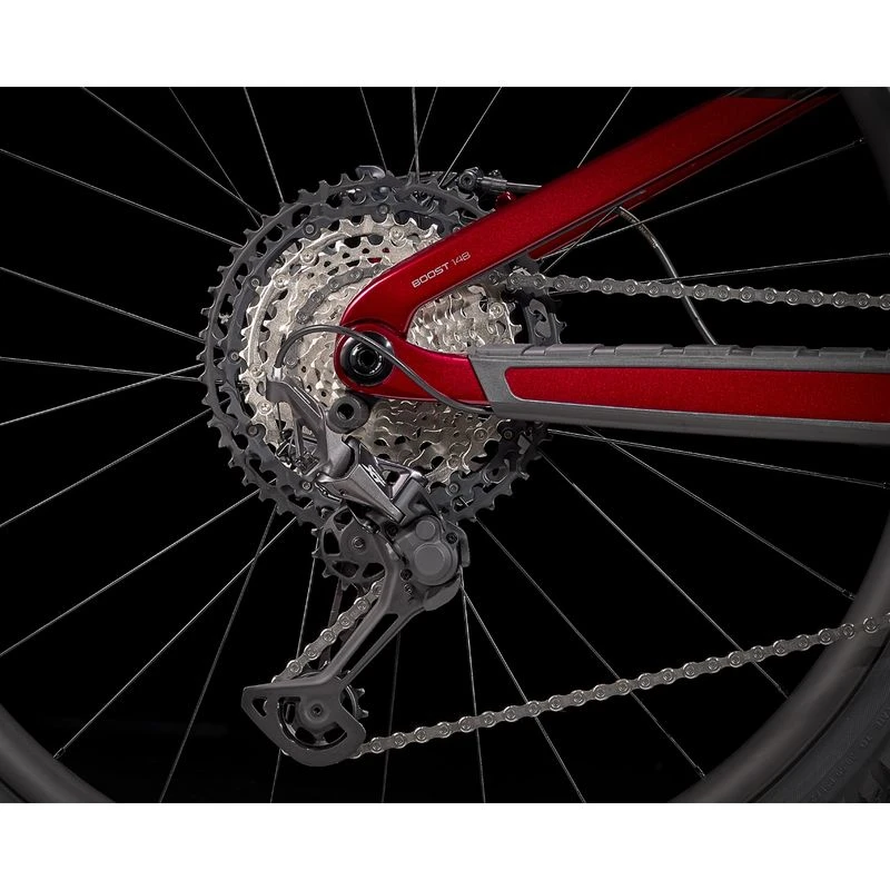 Fuel EX 9.8 combines a light full-carbon frame with parts chosen for the highest performance-to-price ratio. High-end FOX suspension with upgraded front and rear dampers, carbon wheels with a Rapid Drive rear hub, and a super-smooth Shimano XT wide-range drivetrain give this model an extra edge you’ll notice from the first pedal stroke.