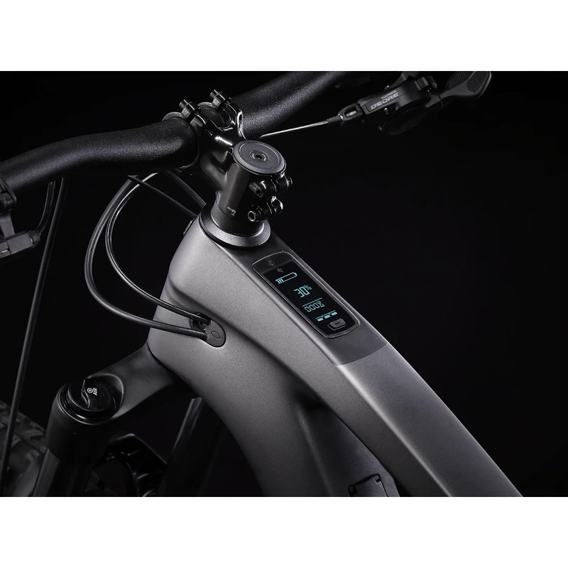 An OCLV Mountain Carbon frame with a fully-encased 360Wh battery, and TQ harmonic pin ring transmission with a smart charging port, integrated LED display and discreet handlebar remote. 150mm RockShox 35 Gold RL fork with DebonAir spring and Motion Control damper, and 140mm RockShox Deluxe Select+ rear suspension. Plus, tubeless-ready wheels and tires, and 12-speed Shimano Deore drivetrain.