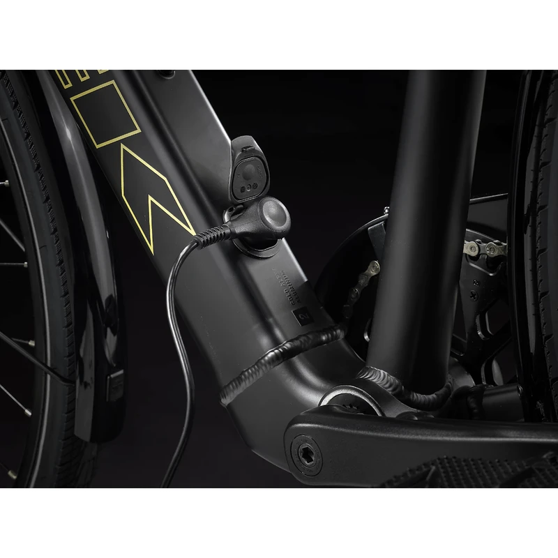 A lightweight aluminum frame and fork, Trek’s proprietary pedal assist system with a hub motor (250W, 40Nm) that assists up to 20 mph and a 250Wh battery for a range of up to 35 miles per charge. Plus, fast 700c wheels, fast-rolling yet stable 40c tires with reflective sidewalls, a reliable 9-speed Shimano drivetrain, hydraulic disc brakes, integrated lights powered by the battery, a MIK-compatible rear rack, fenders, and a kickstand.