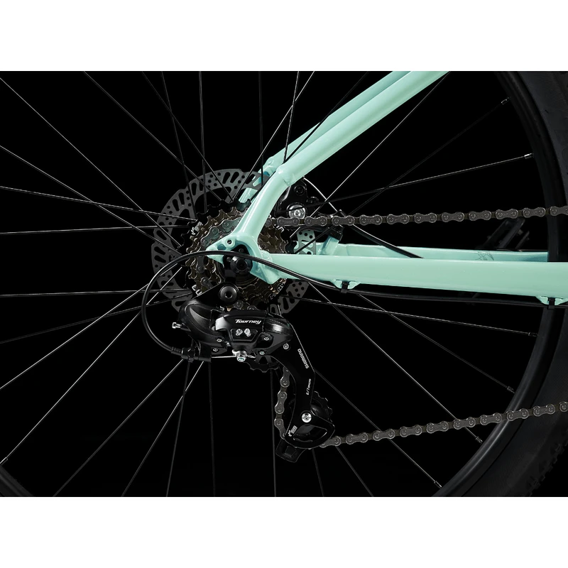 It’s a real mountain bike that’s also perfectly suited to daily commutes, rides around campus, or just getting from A to B on any surface – Rack and fender mounts make it easy to accessorize, so your mountain bike can double as a rugged commuter – Smaller frame sizes (XS and S) have short-reach brake levers that make it easier and more comfortable for riders with smaller hands to brake confidently – Marlin models in XS and S frame sizes have a curved top tube and a lower standover height that makes it easier for smaller riders to mount and dismount – Like every model in the Marlin family, it’s backed by Trek’s lifetime warranty