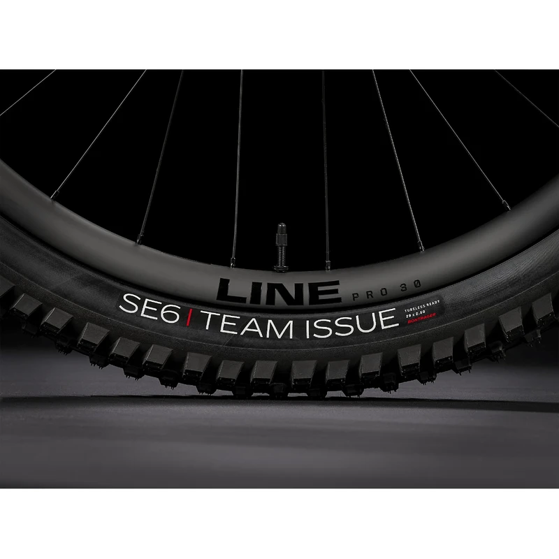 - Rim: Bontrager Line Pro 30, OCLV Mountain Carbon, Tubeless Ready, 6-bolt, Boost110, 15mm thru axle