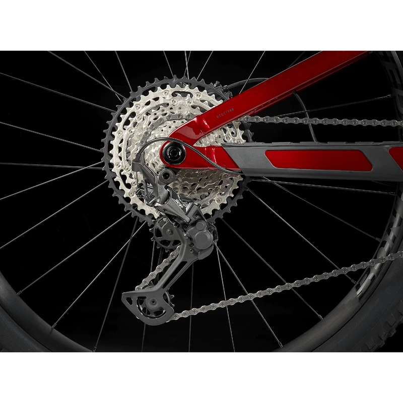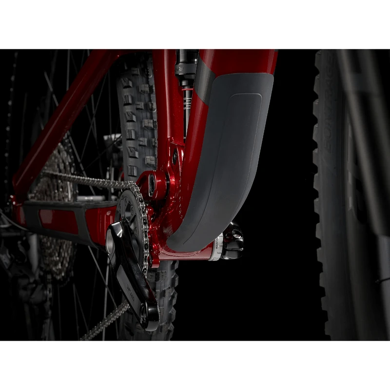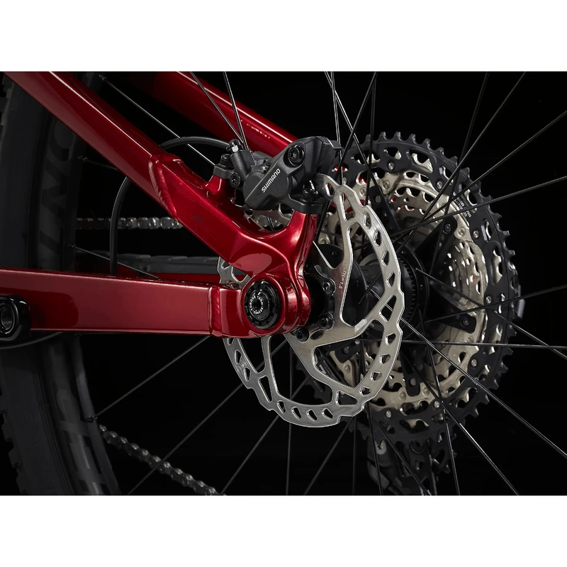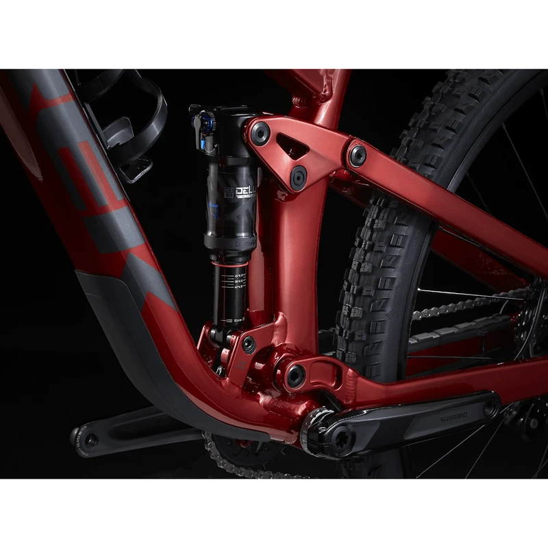 A lightweight aluminum frame with internal storage, 120mm RockShox SID fork with plush DebonAir spring, 120mm of rear travel with a FOX Performance Float shock, and a Shimano XT drivetrain. Plus, 4-piston brakes for confident descents, Bontrager Line Comp 30 wheels that are already completely tubeless ready, including sealant, and a Bontrager Line Dropper.