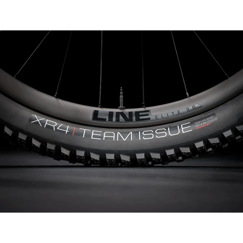 - Wheel front: Bontrager Line Elite 30, OCLV Mountain Carbon, Tubeless Ready, 6-bolt, Boost110, 15mm thru axle