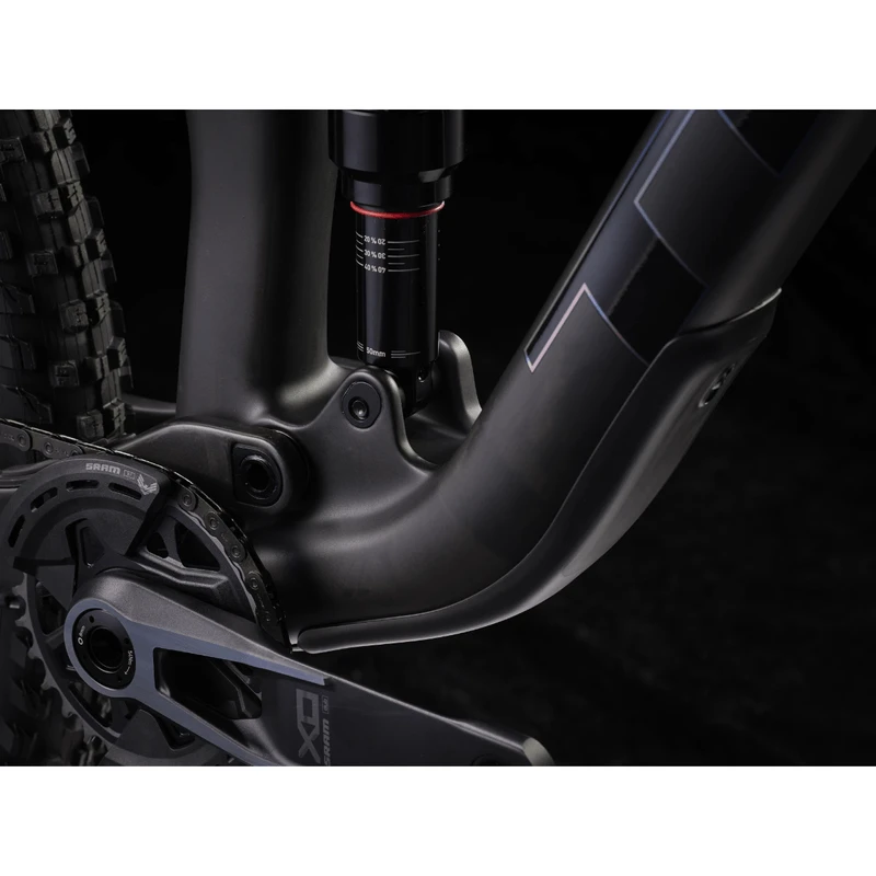 A light and stiff OCLV Mountain Carbon frame, 130mm RockShox Pike Ultimate fork with DebonAir spring and Charger 3 RC2 damper, 120mm of rear travel with a RockShox Deluxe Ultimate RCT shock, and SRAM’s wireless 12-speed X0 AXS direct-mount transmission that’s as tough as it is precise. Plus, wide carbon Bontrager Line Elite 30 wheels with a 108-tooth Rapid Drive hub for instant engagement, 4-piston brakes for confident descents, a RockShox Reverb AXS Dropper, and carbon handlebar/stem combo.